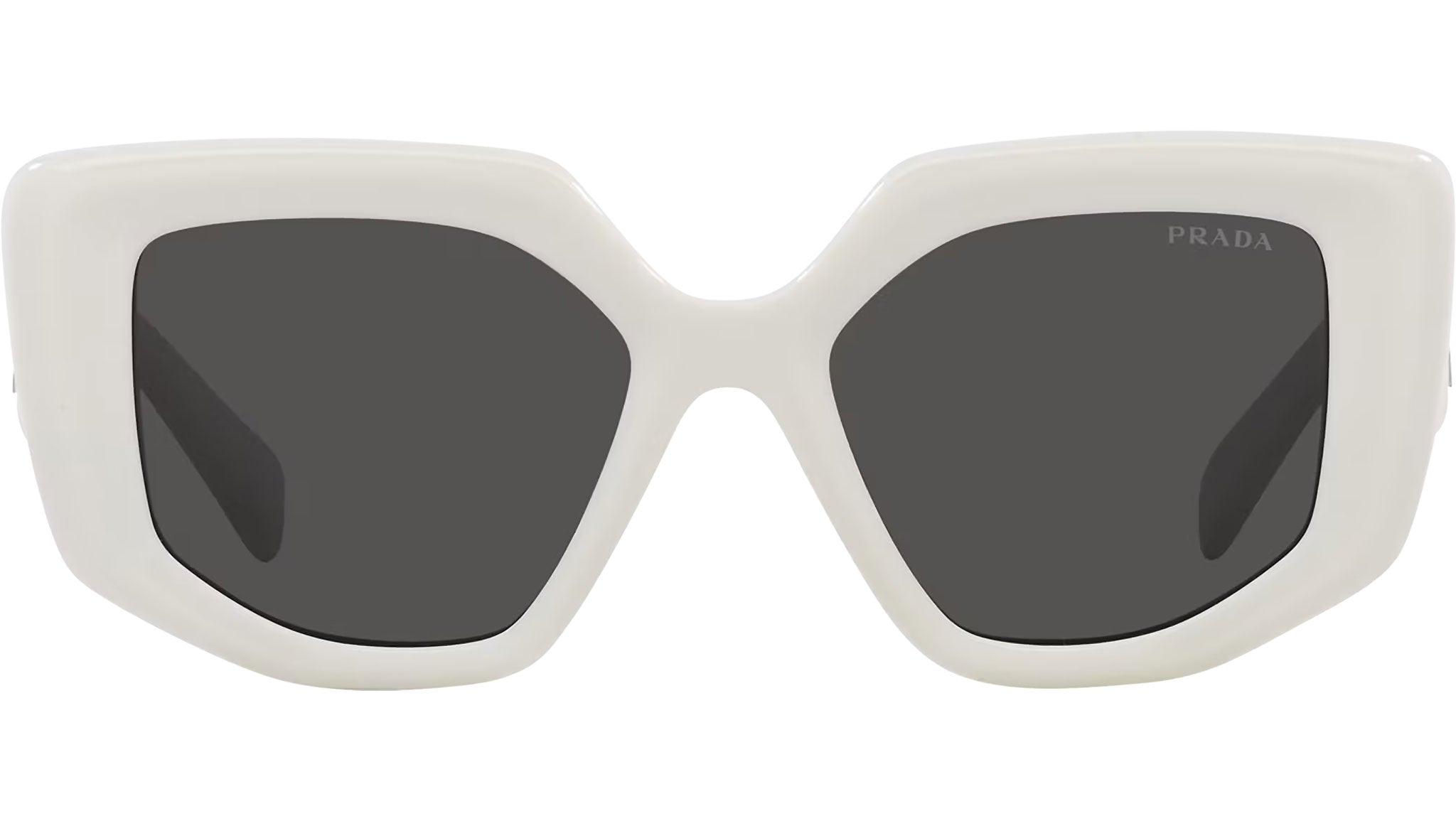 Occhiali da sole Prada modello PR14ZS variante colore 1425S0 bianco talco, con lenti color grigio scuro. Prada è uno dei marchi più rappresentativi della moda italiana, un esempio di stile, dove cultura e tradizione si fondono in uno dei brand più innovativi, prestigiosi e riconosciuti al mondo. Le collezioni di occhiali da sole Prada rispecchiano una grande attenzione ai dettagli e alle nuove tendenze, per uno stile inconfondibile, senza eguali, di raffinata eleganza e qualità assoluta.