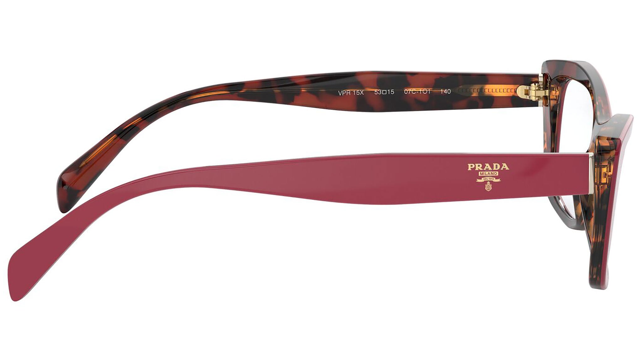 Occhiali da vista Prada modello PR 15XV, variante colore 107C1O1 tartaruga e rosso. Prada rappresenta il meglio della cultura e della tradizione italiana. È uno dei marchi più innovativi, prestigiosi e riconosciuti nel mondo della moda e del lusso. La linea Prada Eyewear Collection è sinonimo di spiccata attenzione ai dettagli e alle nuove tendenze.