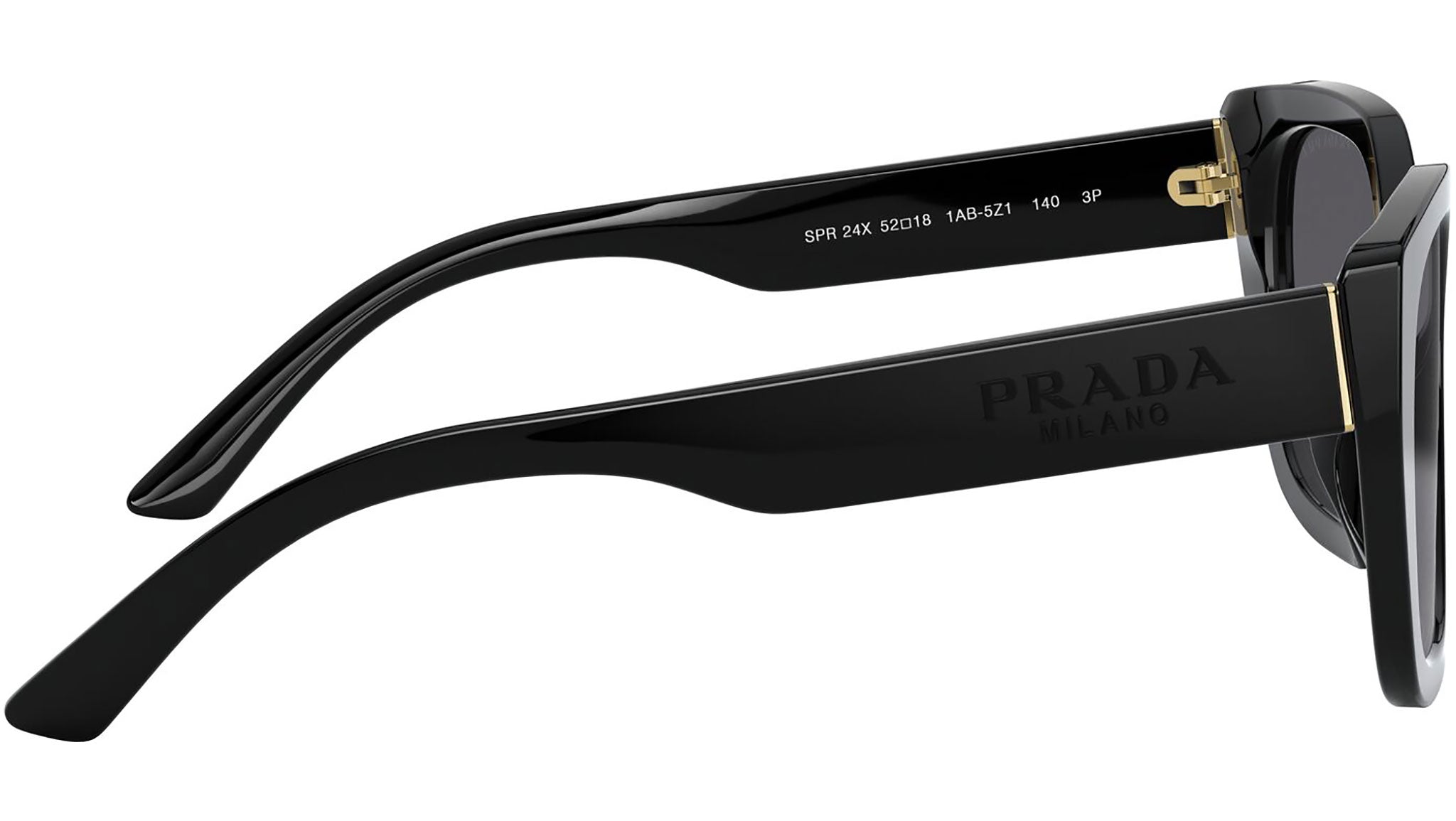 Prada sunglasses model PR 24XS, black frame variant, color code 1AB5Z1 with polar grey lens. Prada represents the best of Italian culture and tradition. It is one of the most innovative, prestigious and widely recognized brands in the fashion and luxury goods industries, with a keen attention to details and new trends.