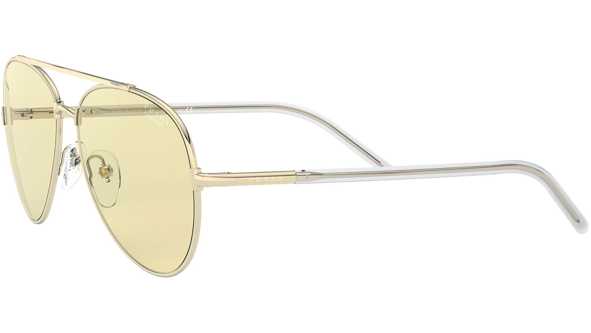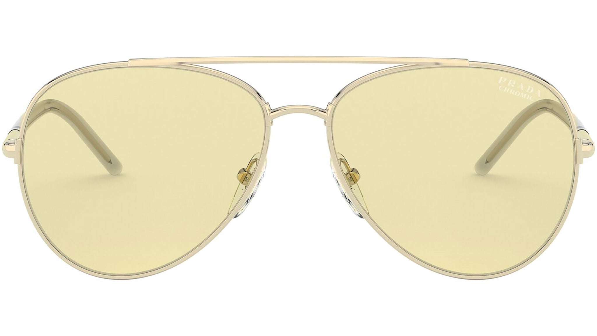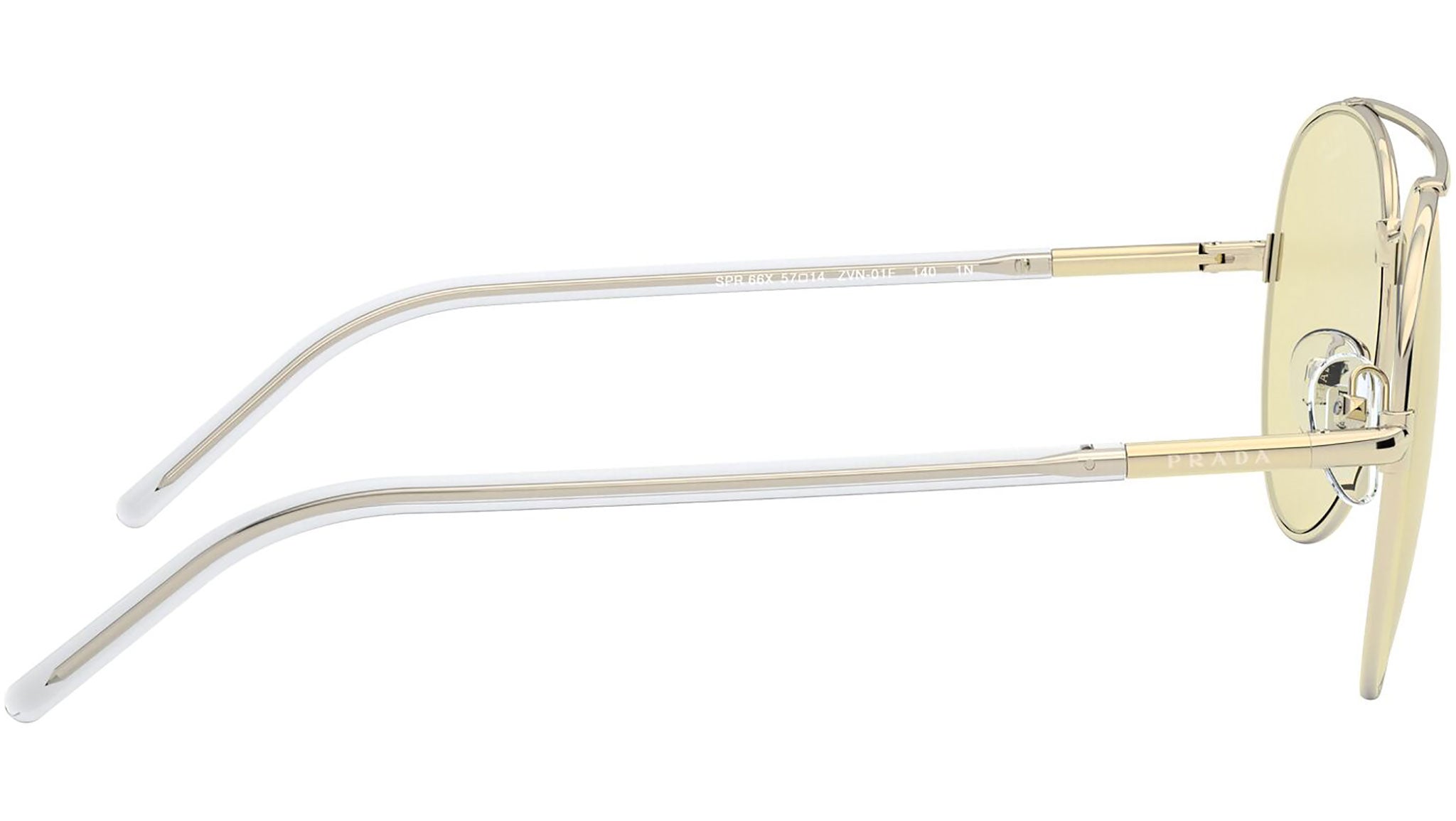 Prada sunglasses model PR 66XS, pale gold frame variant, color code ZVN01F with soleil photocromatic lens. Prada represents the best of Italian culture and tradition. It is one of the most innovative, prestigious and widely recognized brands in the fashion and luxury goods industries, with a keen attention to details and new trends.