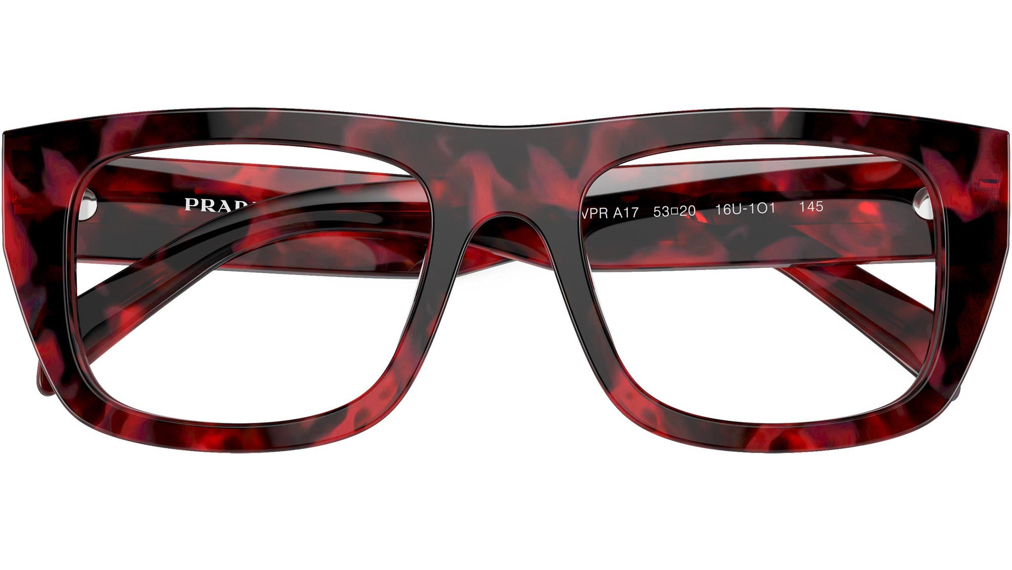 Occhiali da vista Prada donna modello A17V con montatura marmo rubino full rim in acetato e lenti demo base 4. Fit a ponte alto. Linea: Signature. Brand code: PRA17V. Codice colore: 16U1O1. Rivenditore autorizzato Prada. Ogni prodotto Prada viene consegnato con astuccio originale e accessori ed è coperto da garanzia del produttore di 12 mesi.