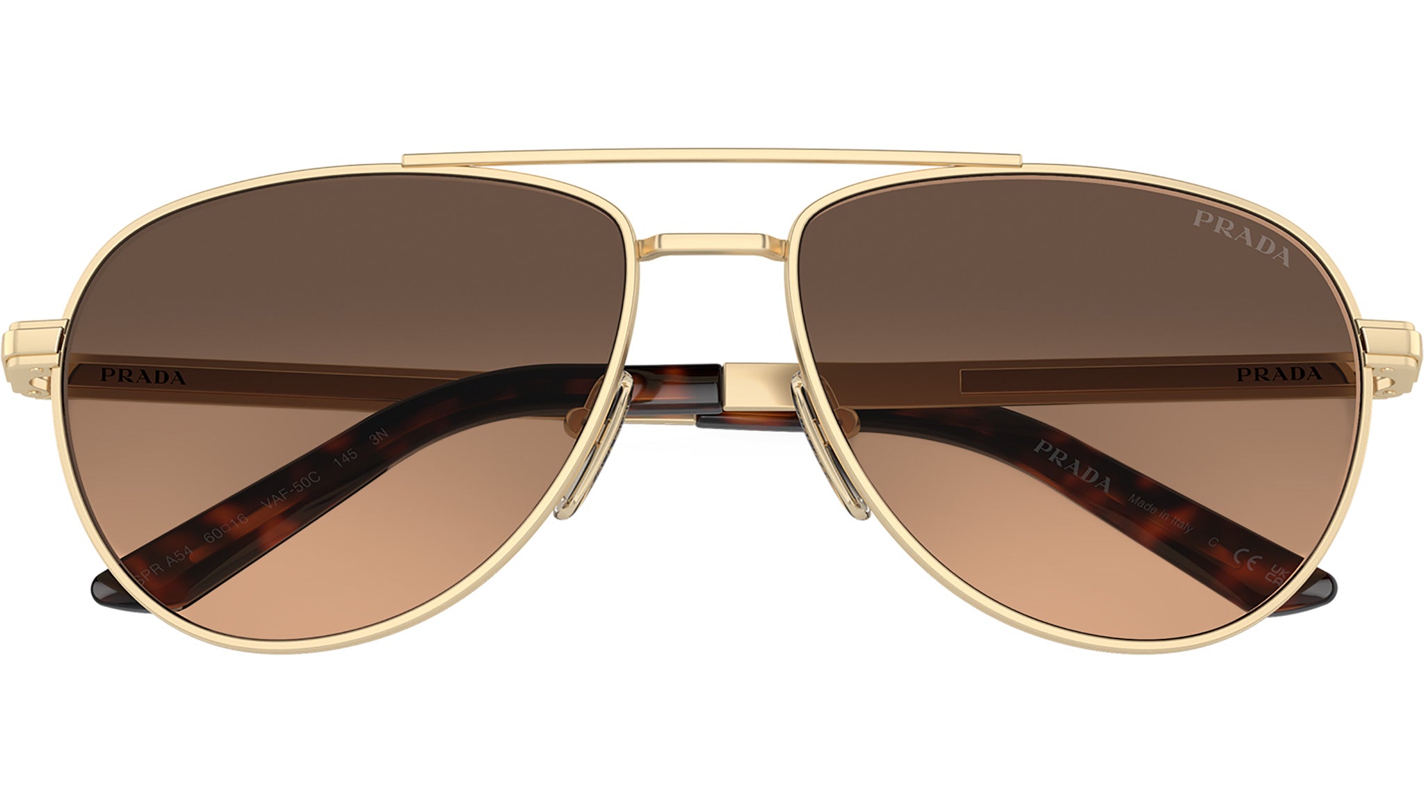 Occhiali da sole Prada uomo modello A54S con montatura oro chiaro opaco full rim in metallo e lenti sfumato marrone grigio base 2. Fit con naselli regolabili. Linea: Signature. Brand code: PRA54S. Codice colore: VAF50C. Rivenditore autorizzato Prada. Ogni prodotto Prada viene consegnato con astuccio originale e accessori ed è coperto da garanzia del produttore di 12 mesi.
