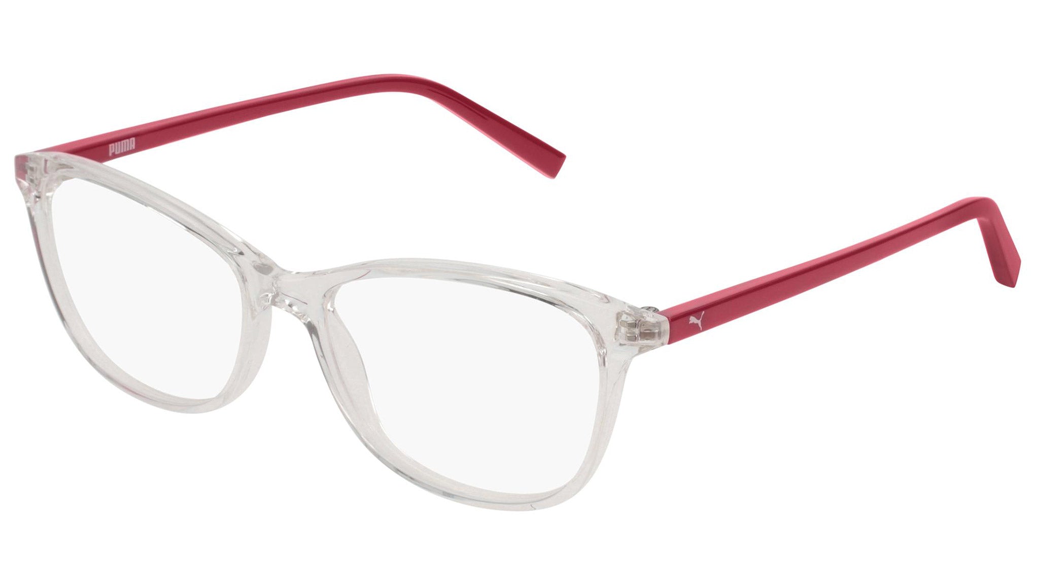 Puma for Kids model PJ0033O 003 shiny crystal optical frame. These kids are on the move. They roam the streets in search for recognition, emotions and daily kicks: celebrating with friends at the Luna Park, a thrilling jump, a trick on a skateboard, or simply seeing something new.