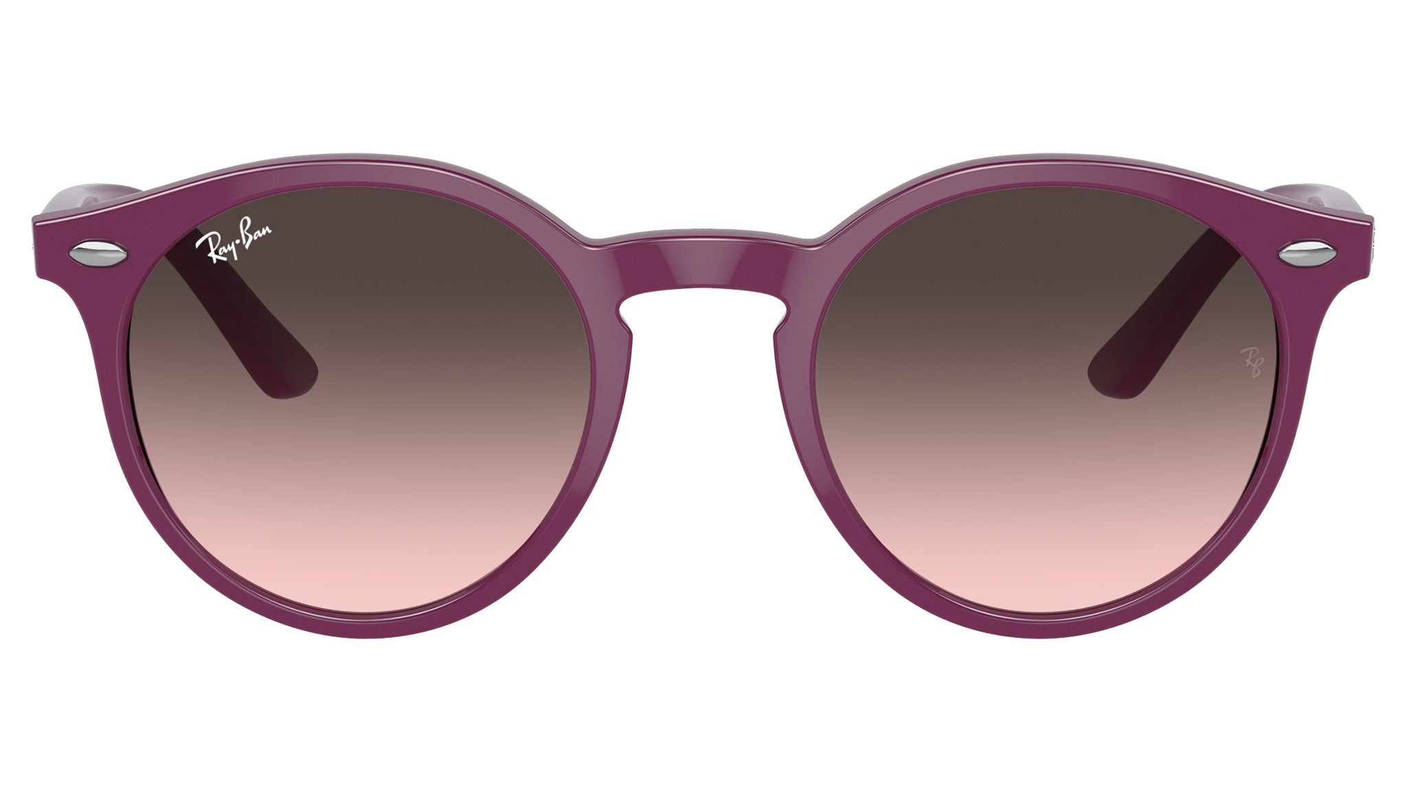 Occhiali da sole Ray-Ban Kids RJ9064S in iniettato codice colore 716246 ciliegia. Forma panto unisex full rim con lenti rosa grigio. Con custodia originale e garanzia. Rivenditore autorizzato Ray-Ban.