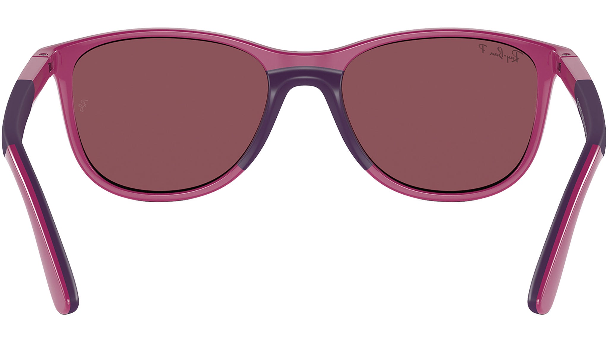 Occhiali da sole Ray-Ban Kids RJ9077S in iniettato codice colore 71495Q fucsia su viola. Forma quadrata unisex full rim con lenti viola. Con custodia originale e garanzia. Rivenditore autorizzato Ray-Ban.