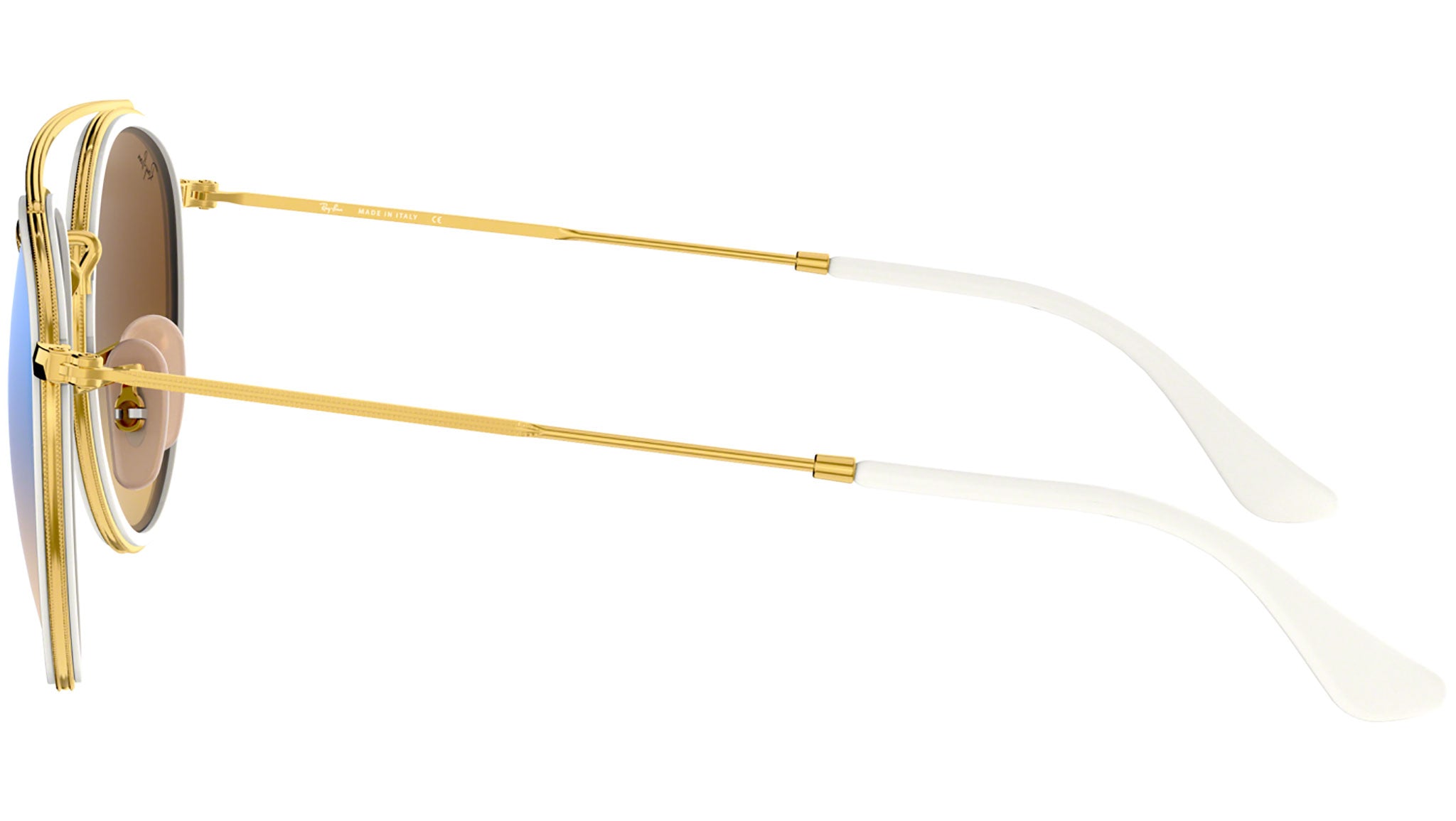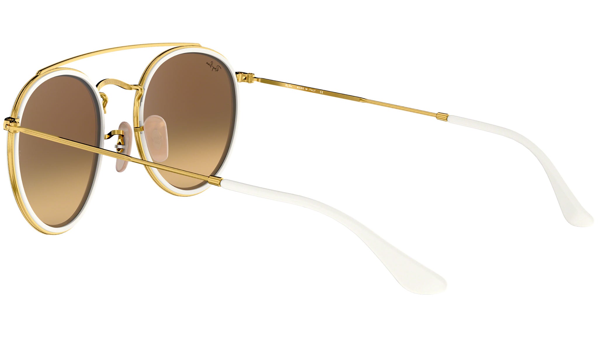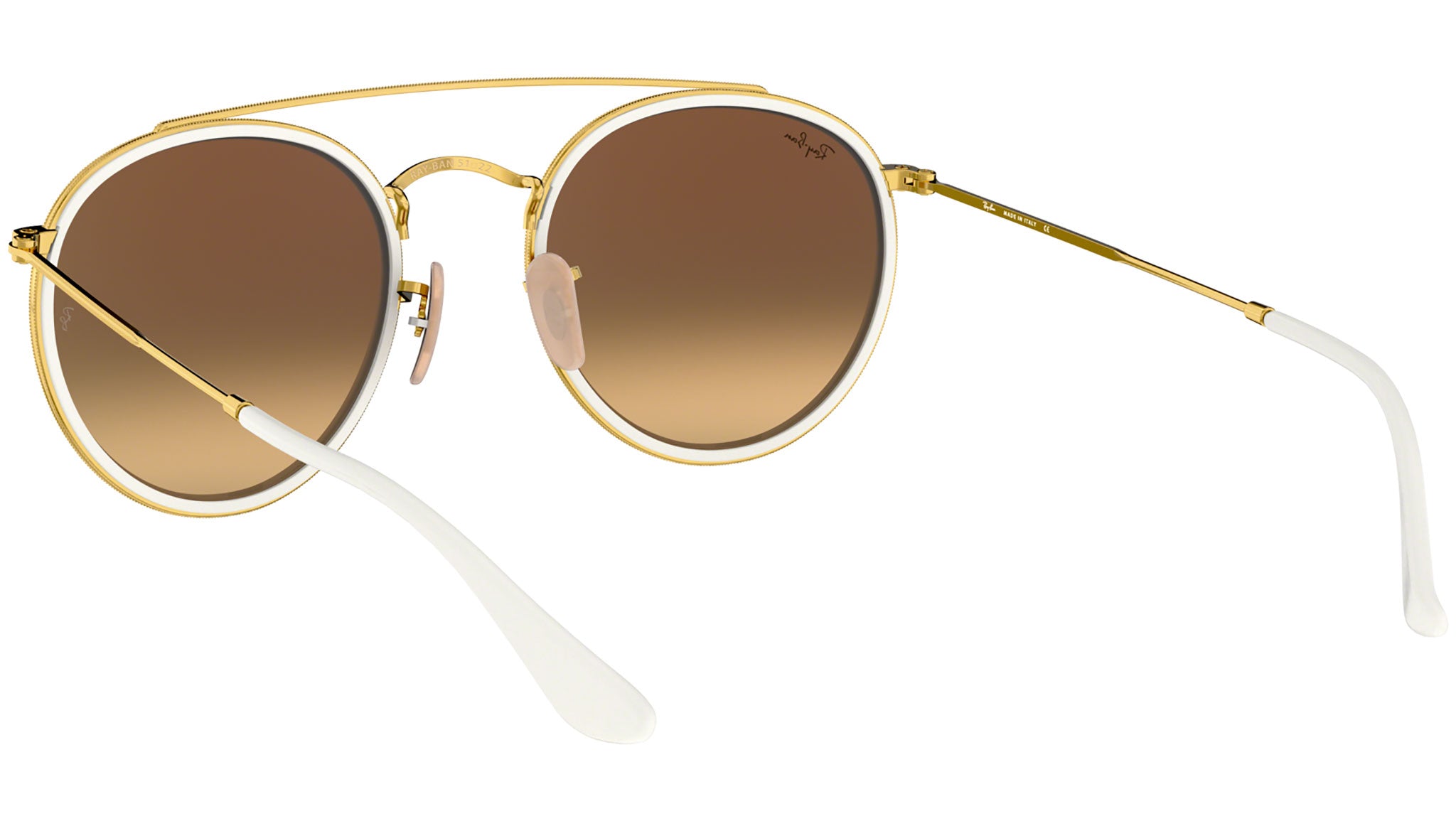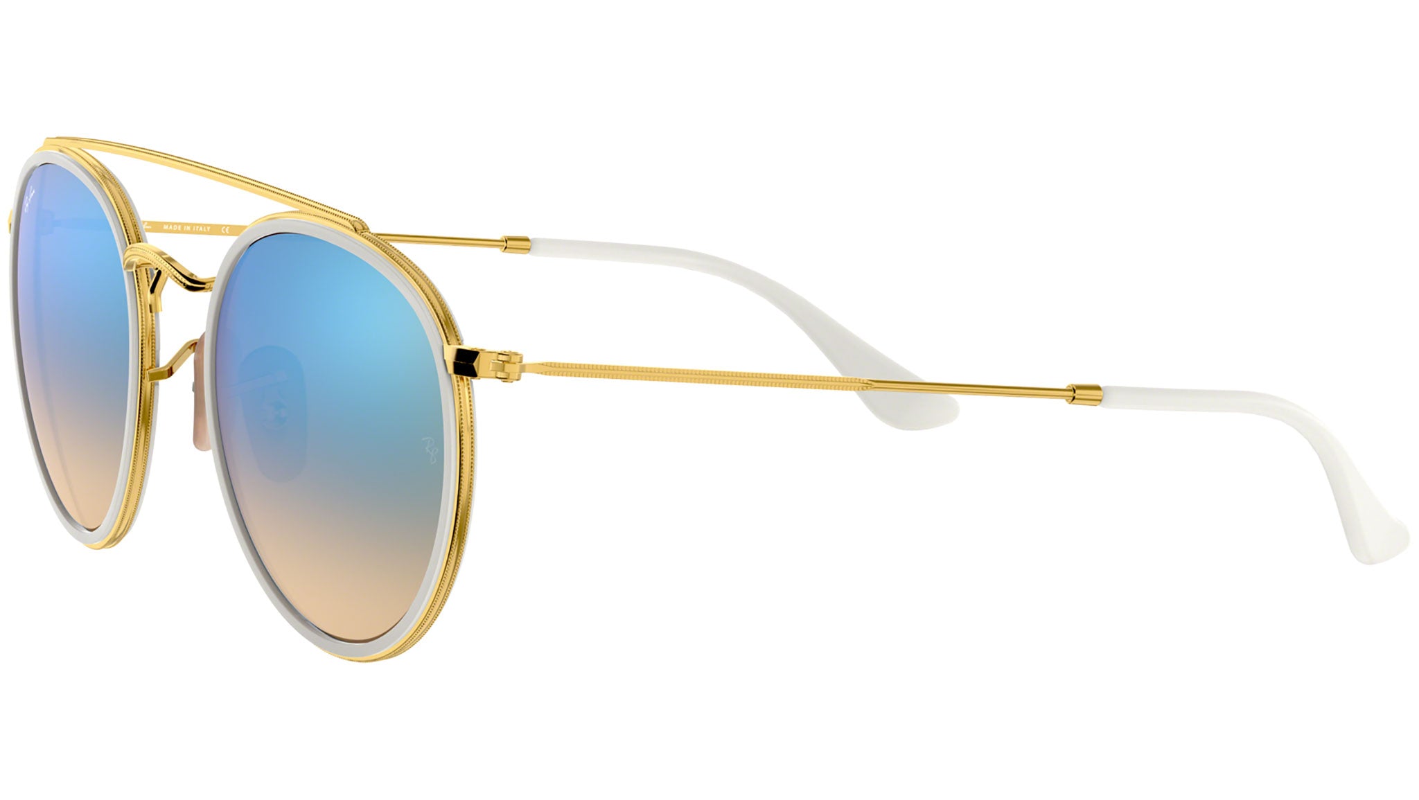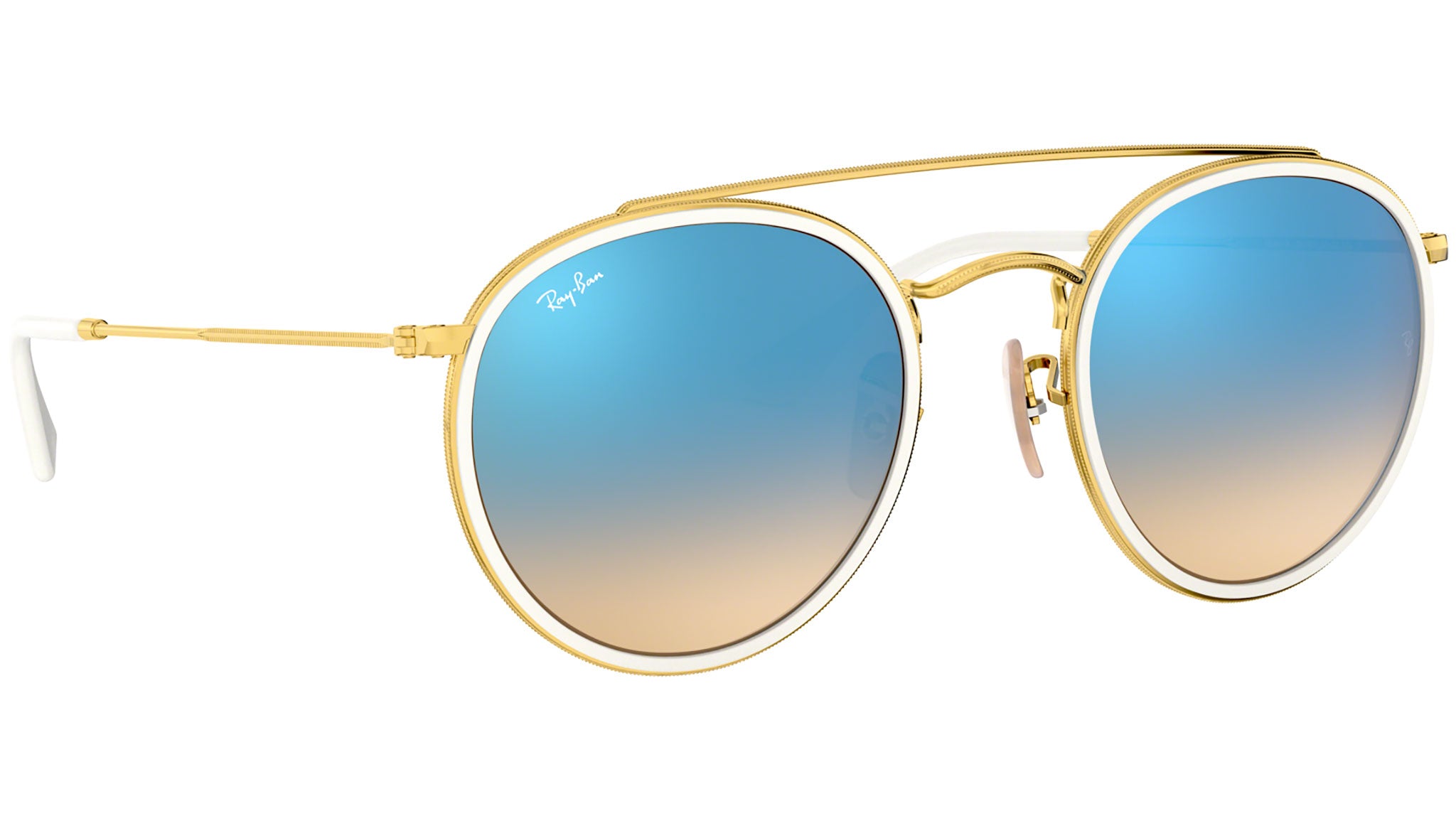 The new full metal round double bridge reinvents authentic DNA design to create an all-new Ray-Ban icon, disrupting the concept of iconic design with a revolutionary statement of must-have style. Featuring minimalistic volumes in easy to wear tones of gold or black and flat flash gradient lenses, this slick style offers contemporary individuals a passe-partout look with irresistible contemporary appeal – dress it up, or dress it down, a true icon knows no limits!