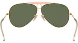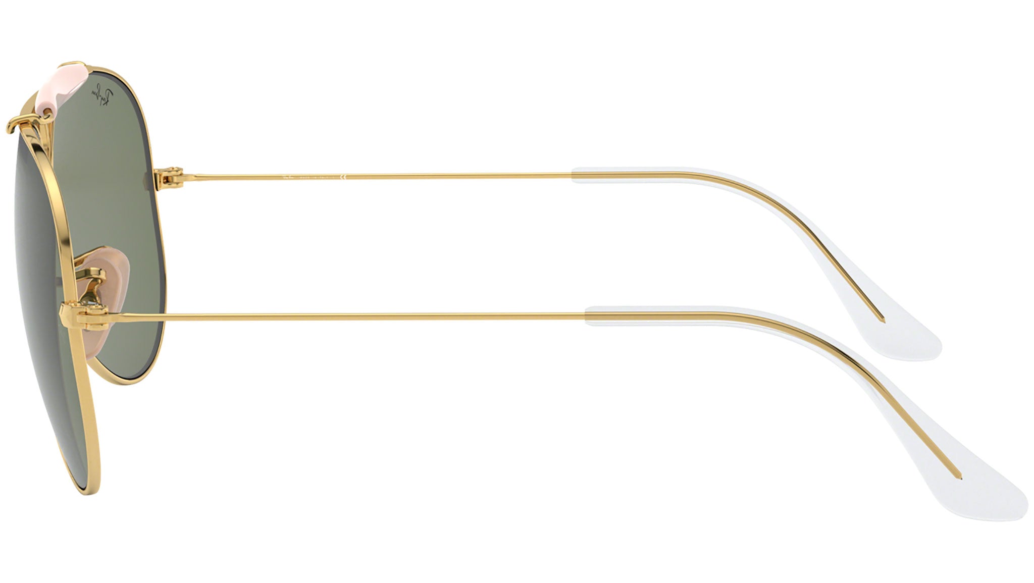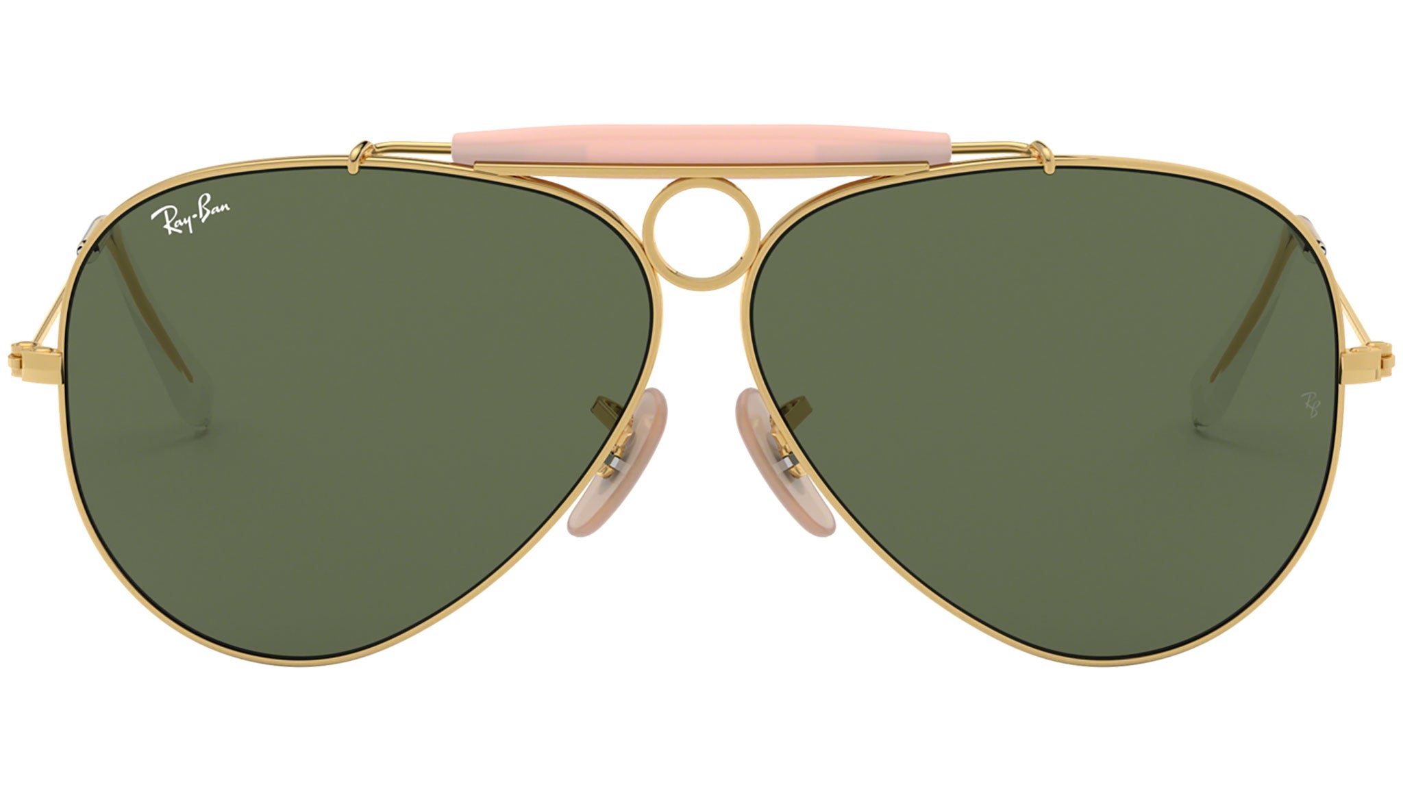 Ray Ban Aviator Shooter sunglasses offer a vintage and unique twist to the Aviator Classic. In line with the history of the Aviator, which was designed for aviator pilots, Aviator Shooter RB3138 is crafted with additional aviation-inspired features such as the vanity bullet hole in the center of the frame and especially thin temples to enhance wide peripheral vision. These vintage sunglasses are built with a double bridge and acetate brow bar and traditional aviator pilot lenses.