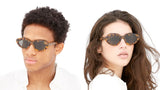 Designed for Spring/Summer 2021 collection, Cocca is a playful silhouette characterized by its thick curvaceous lines and features. A fresh interpretation of cat-eye vintage frames, with thick acetate construction, low nose-bridge and wide lenses. This model comes in a Havana acetate with black lenses. The box contains a semi-hard case and a cleaning cloth.
