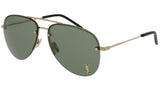Il modello da sole CLASSIC 11 M 003 della maison Yves Saint Laurent, con montatura oro pallido lucido e lenti color verde. Saint Laurent Eyewear rappresenta in pieno le attitudini uniche del brand: stile senza tempo coniugato a un moderno concetto di lusso. La collezione sole offre una raffinata selezione di prodotti unici, contraddistinti da una qualità inarrivabile.