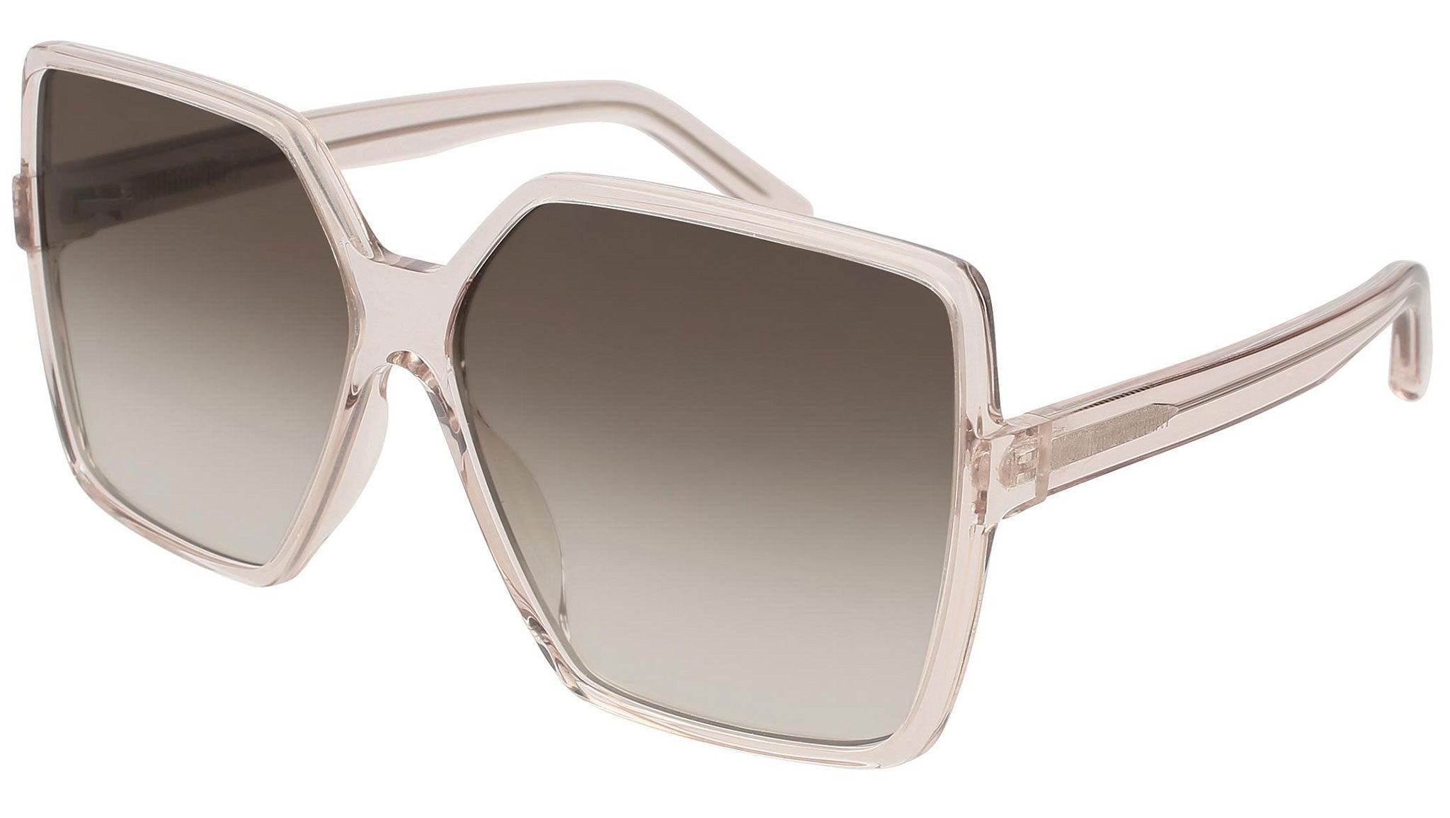Il modello da sole SL 232 BETTY 005 della maison Yves Saint Laurent, con montatura trasparente lucido e lenti color sfumato marrone. Saint Laurent Eyewear rappresenta in pieno le attitudini uniche del brand: stile senza tempo coniugato a un moderno concetto di lusso. La collezione sole offre una raffinata selezione di prodotti unici, contraddistinti da una qualità inarrivabile.