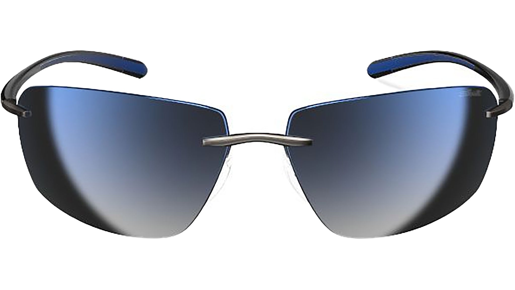 Silhouette Streamline Collection 8727 in 6560 frame color featuring blue mirror gradient lenses. The Biscayne Bay model from the Streamline Collection serves as a versatile accessory, exuding an exclusive combination of sportiness and elegance suitable for everyday wear. These sunglasses lean into a minimalist aesthetic, but Silhouette's signature meticulous attention to detail is still prominent in the comfortable fit, balanced weight, and harmonious fusion of materials. The model's flat profile highlights its dynamic, sporty charm. Silhouette prides itself on providing perfect harmony between frames and lenses, ensuring an optimal visual experience with lenses that are custom-made to fit their respective frames. Made predominantly by hand with utmost precision, Silhouette's Vision Sensation® lenses are 100% crafted in Austria. Now, the benefits of Silhouette Vision Sensation® extend to sunglasses as well. The polarizing filter, consisting of 12 impeccably aligned layers, assures a clear view free of unpleasant reflections, thus delivering complete visual comfort.