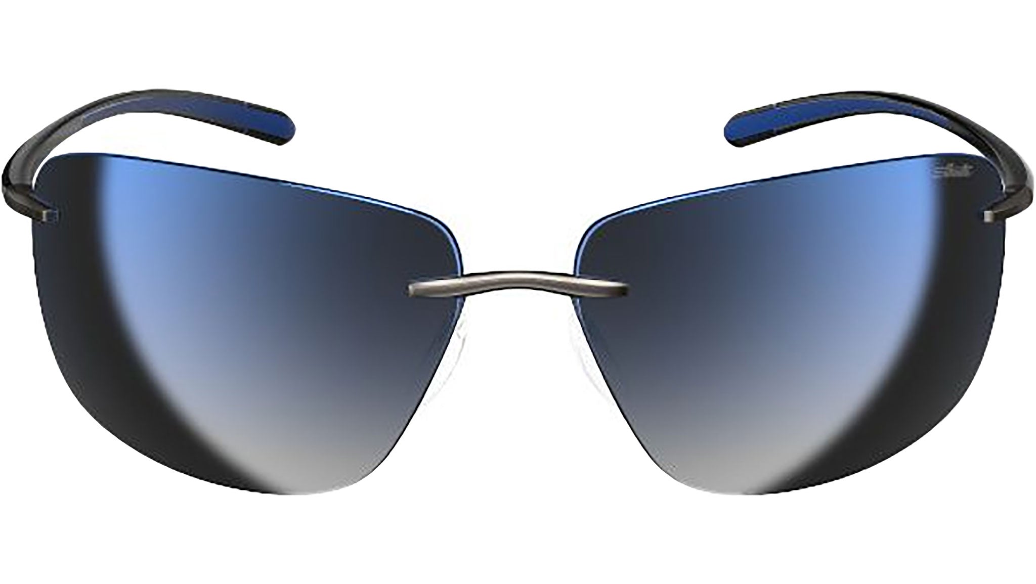 Silhouette Streamline Collection 8728 in 6560 frame color featuring blue mirror gradient lenses. The Cape Florida design, part of the Streamline Collection, is a multi-functional accessory embodying an exclusive mix of athleticism and sophistication. While these sunglasses embrace a minimalist approach, they still showcase Silhouette's trademark commitment to detail evident in the comfortable fit, balanced weight, and the harmonious mix of materials. Furthermore, the model's striking masculine profile provides all the durability necessary for an active lifestyle.