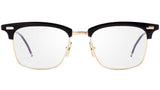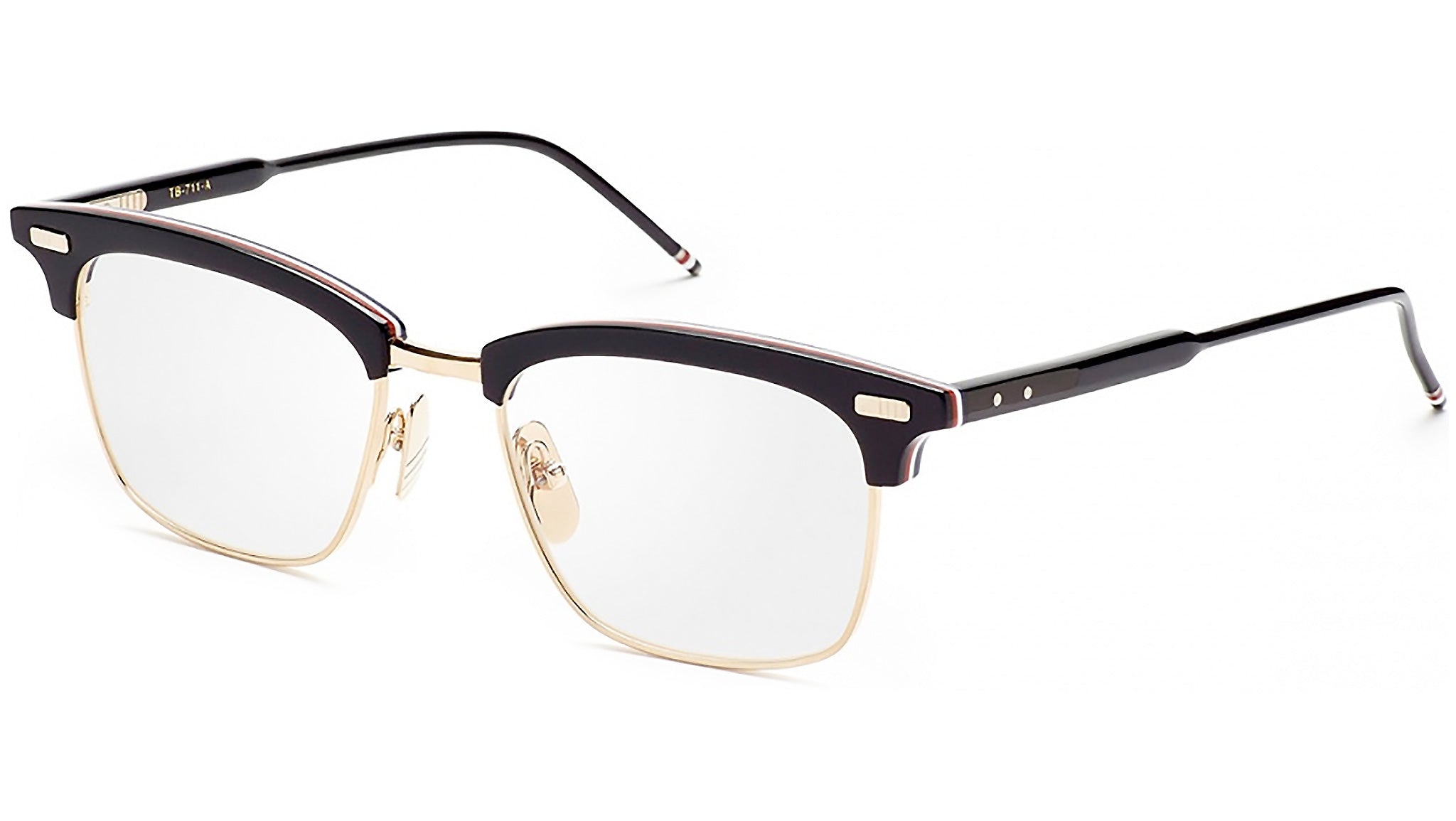 These classic unisex Thom Browne glasses frames come in high-quality black acetate and 12k gold-plated titanium, combining a rich, striking look with vintage elegance. With this design, Thom Browne has cleverly applied the designer’s world-renowned tailoring expertise to these glasses, ensuring a comfortable, secure fit that remains elegant still, using delicately engraved titanium metal nose pads. With these glasses comes a 24 month warranty and a complimentary professional lens cleaning kit to keep your lenses just as sharp as the frame itself.