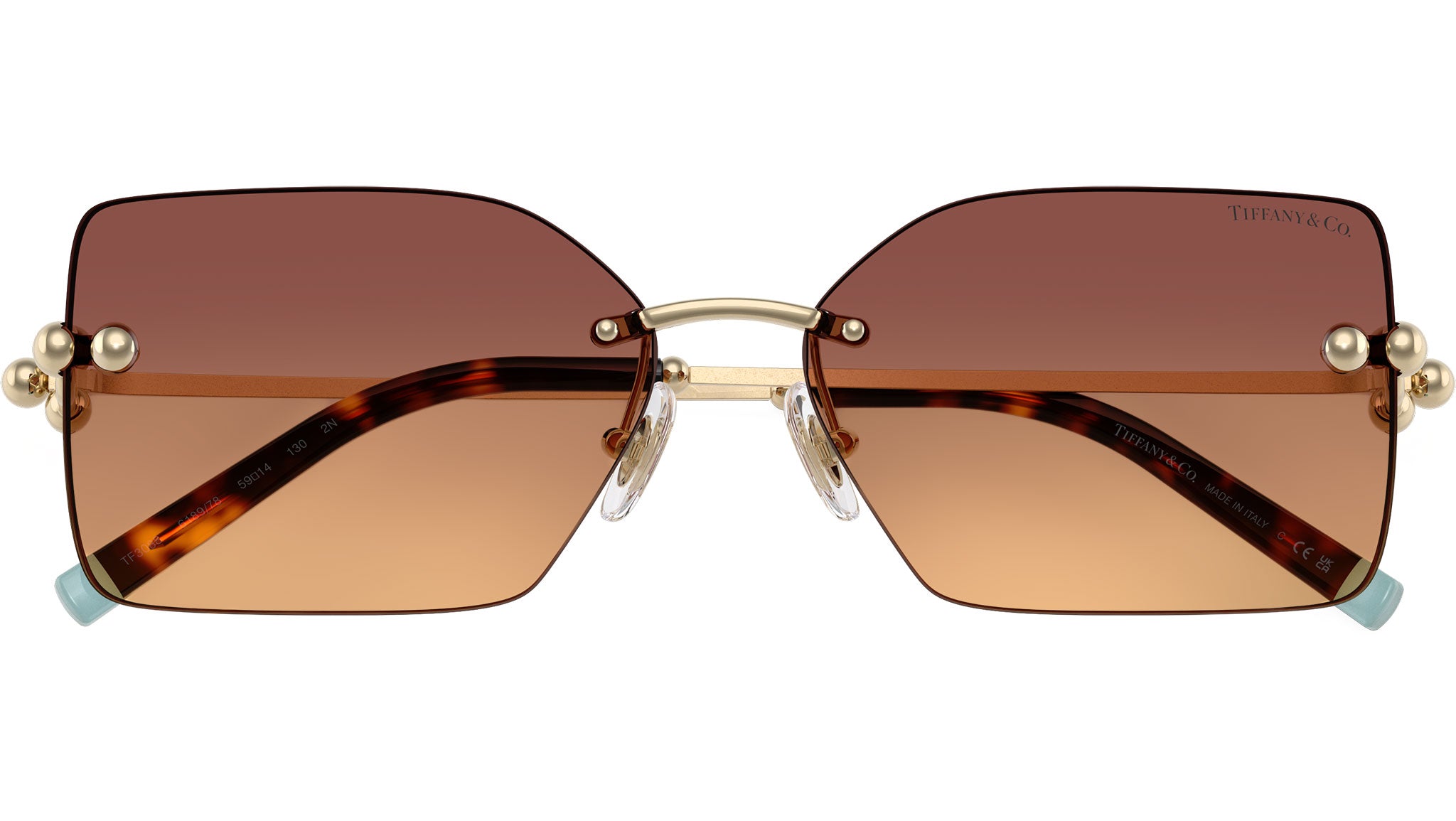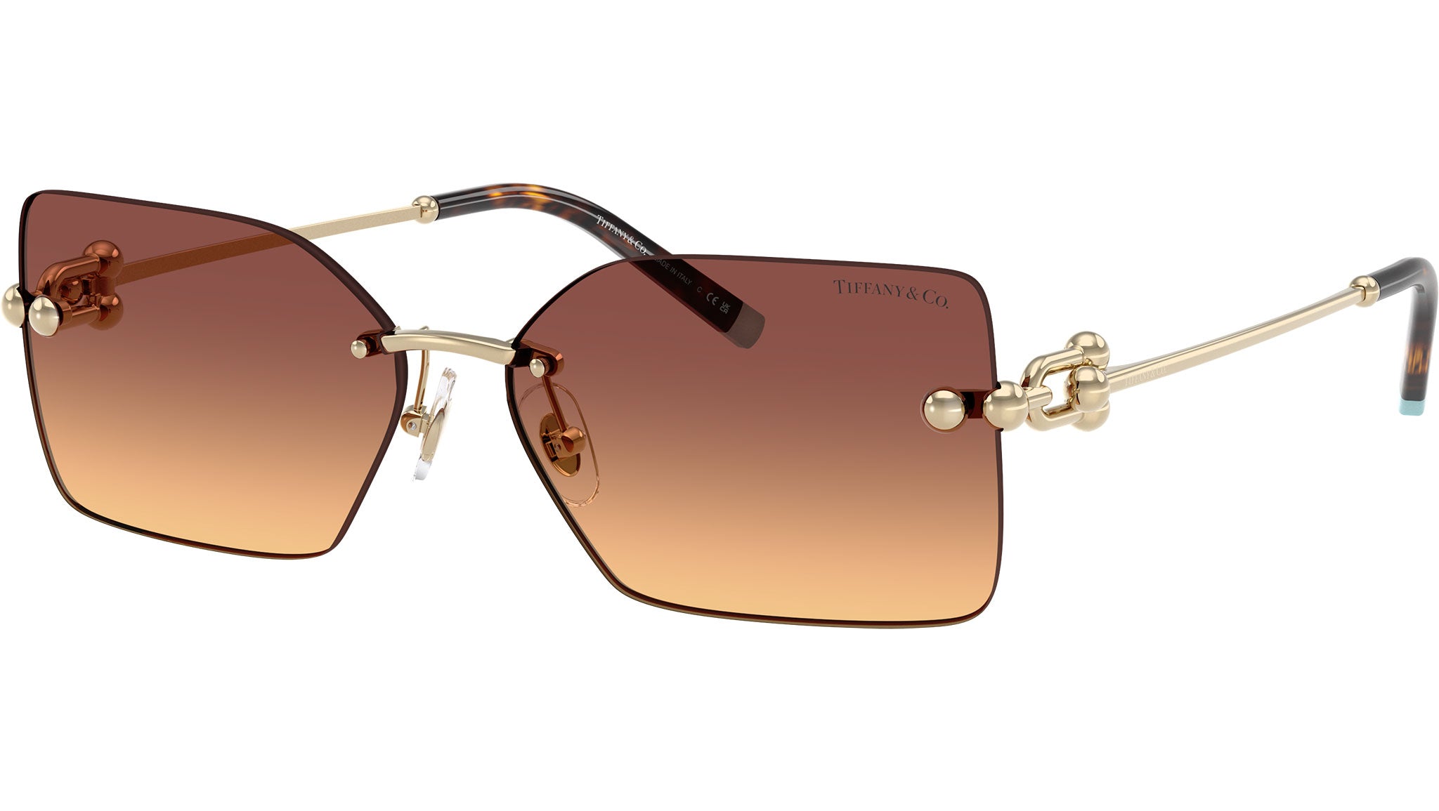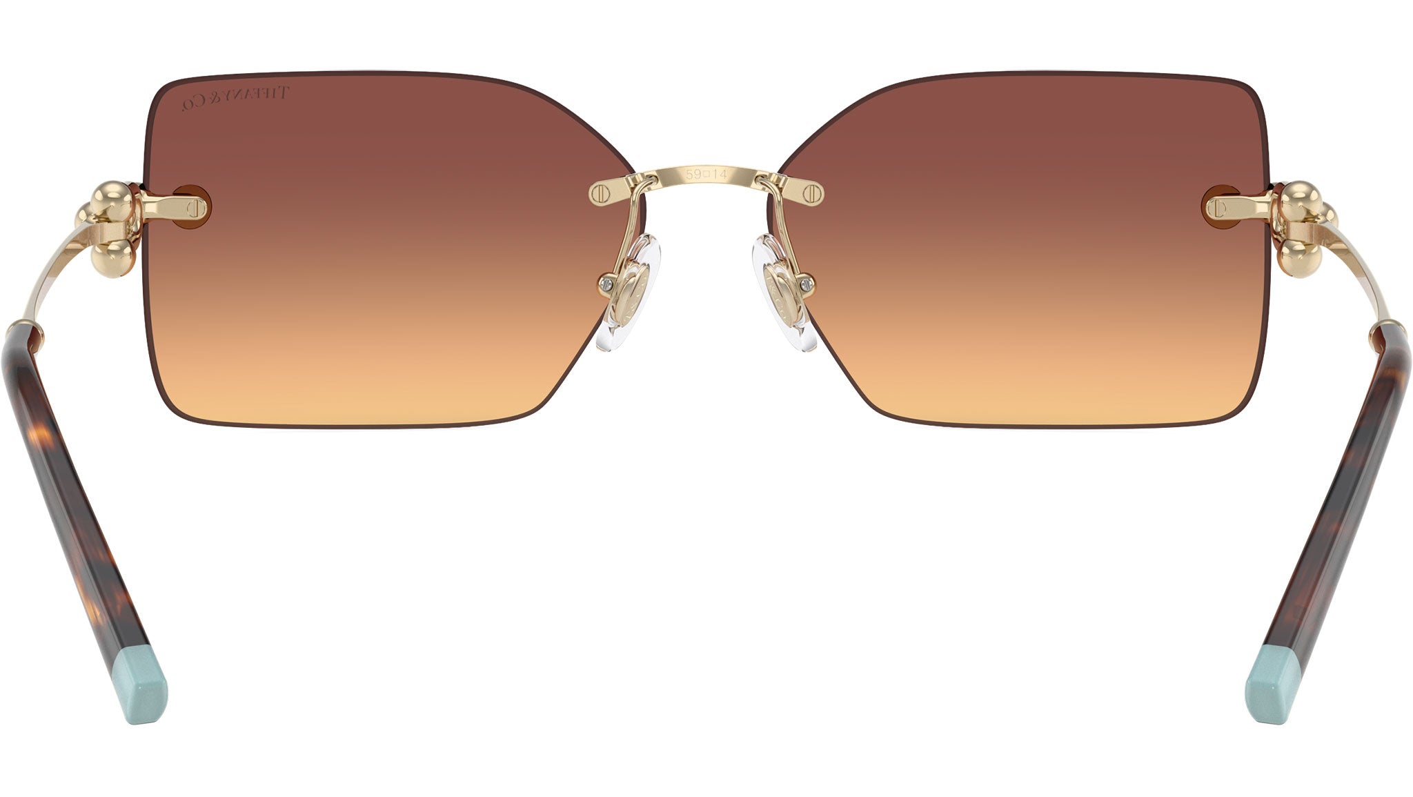 Occhiali da sole Tiffany donna modello 3088 rimless in metallo oro chiaro con lenti arancione sfumato viola base 4. Naselli regolabili. Linea: Icons. Codice brand: 0TF3088. Codice colore: 618978. Rivenditore autorizzato online Tiffany Eyewear. Ogni prodotto Tiffany viene consegnato con astuccio originale e accessori ed è coperto da garanzia del produttore di 12 mesi.