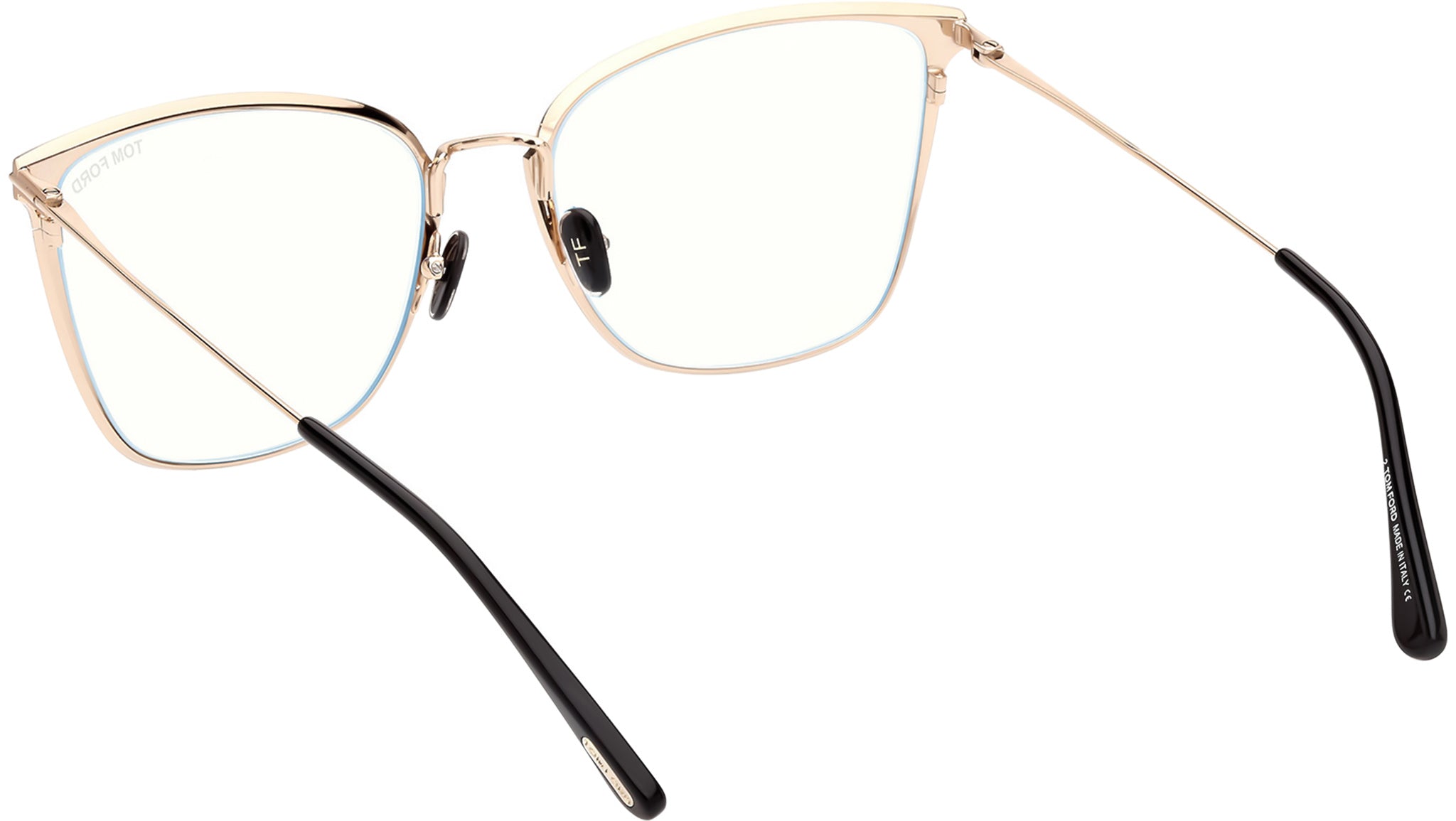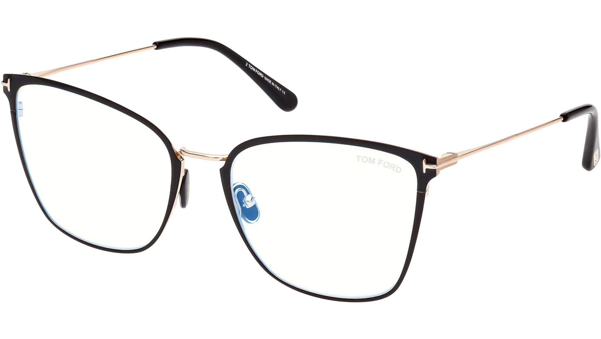 Occhiali da vista Tom Ford donna modello FT5839-B in metallo colore 001 nero / oro rosa lucido con lenti demo. Codice brand: FT5839. Codice colore: 001. Rivenditore autorizzato Tom Ford online. Gli occhiali vengono consegnati con custodia e accessori originali e sono coperti da garanzia standard di 12 mesi del produttore.