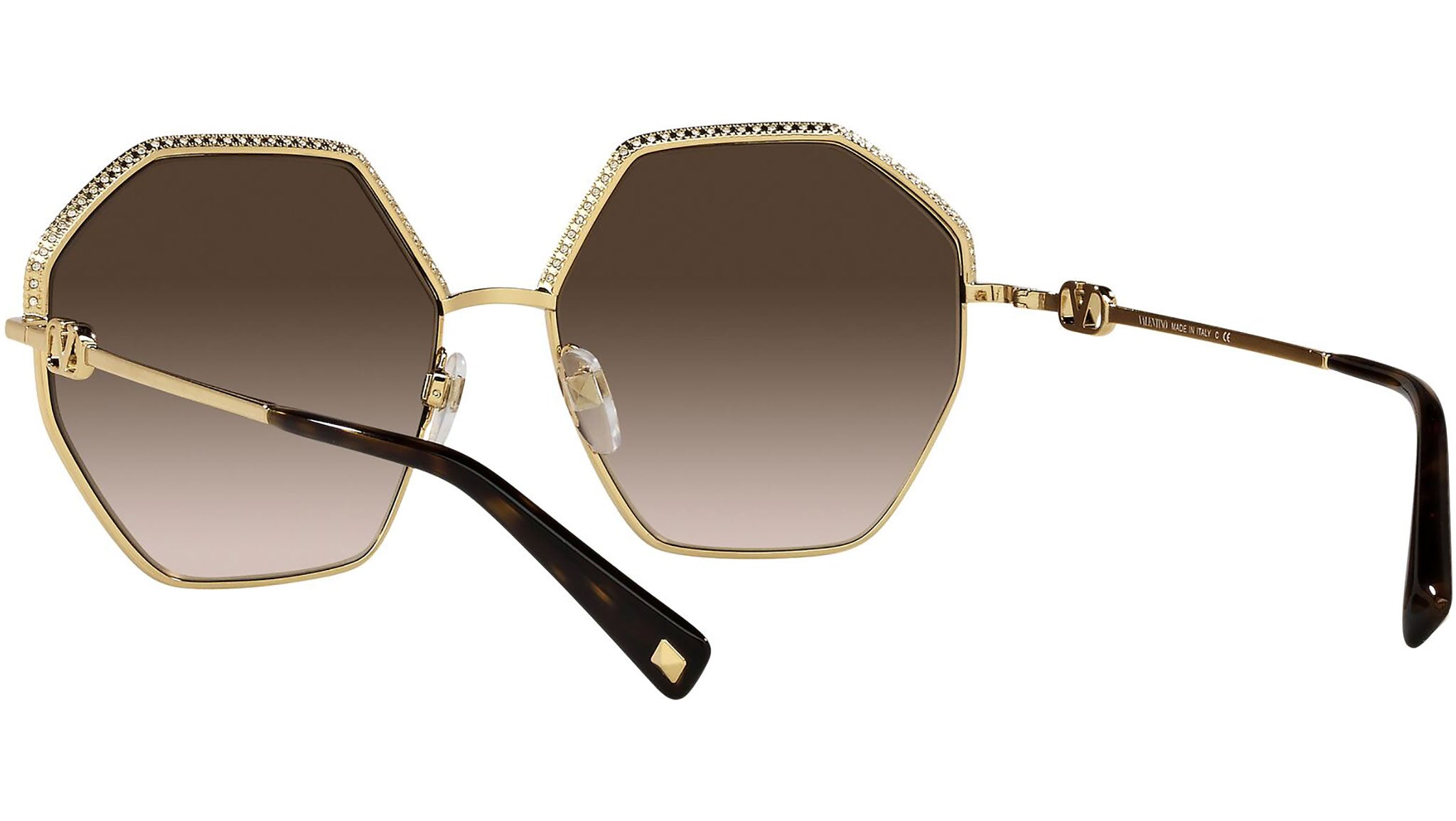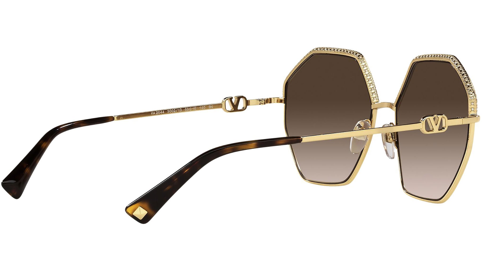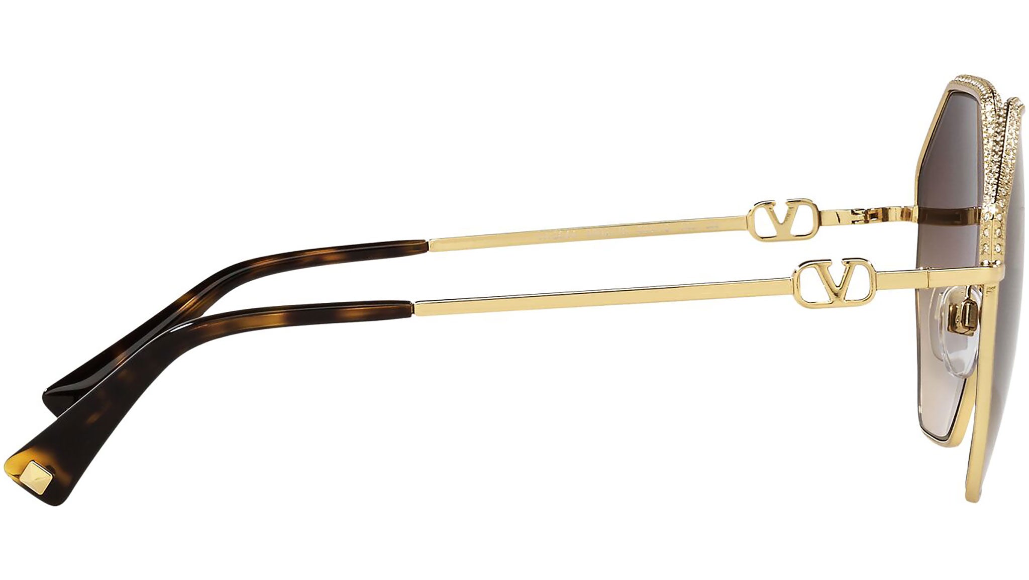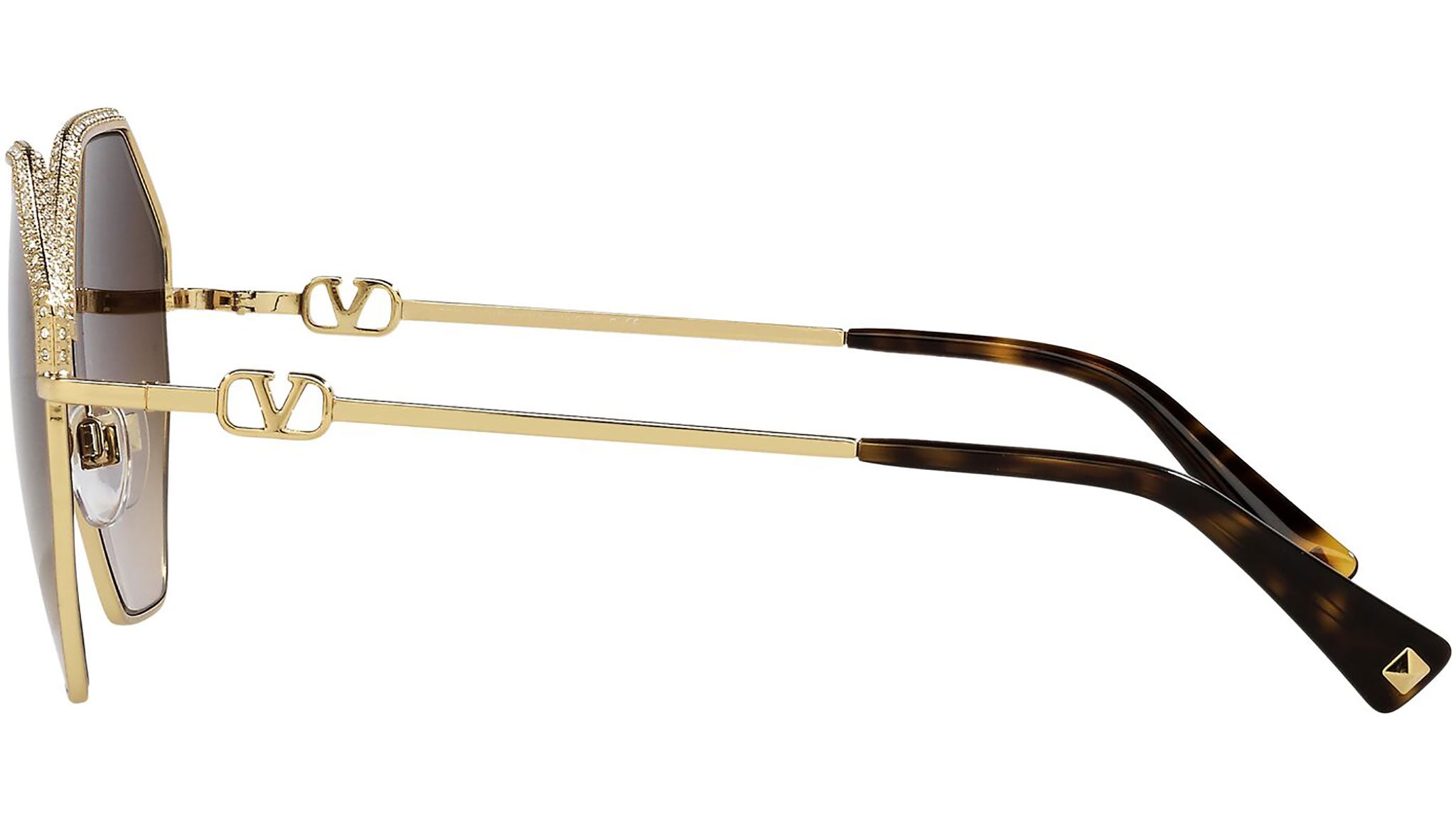 Occhiali da sole Valentino modello VA2044 variante colore 300213 oro, con lenti color marrone sfumato. Fondata a Roma nel 1960, la Maison Valentino è una delle espressioni più alte del savoir faire couture e dell’eccellenza che hanno reso il made in Italy famoso nel mondo. Le collezioni Valentino eyewear esprimono l’eleganza senza tempo della Maison in un perfetto equilibrio tra tradizione ed innovazione nel pieno rispetto degli iconici valori del brand.