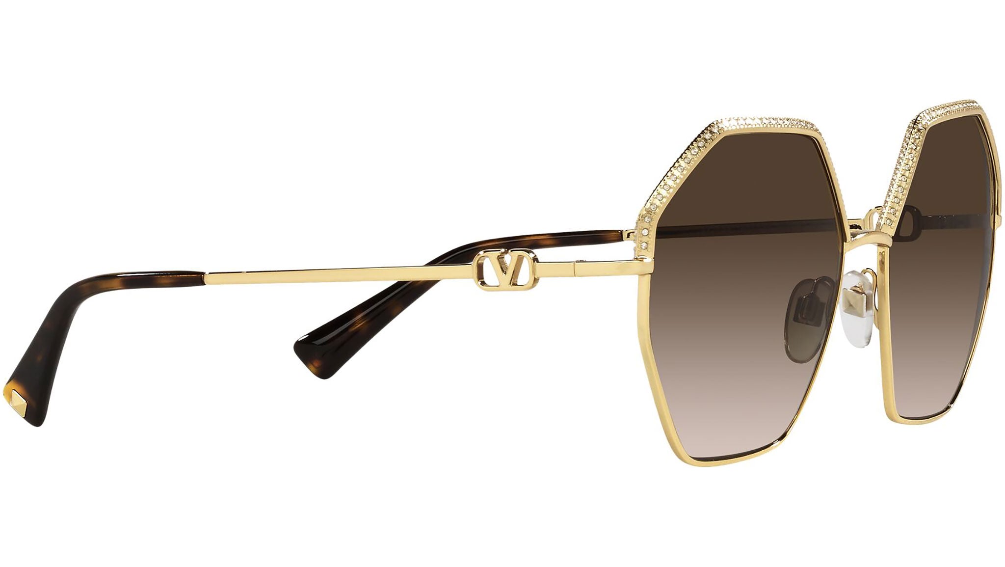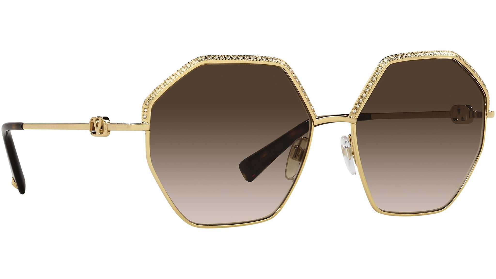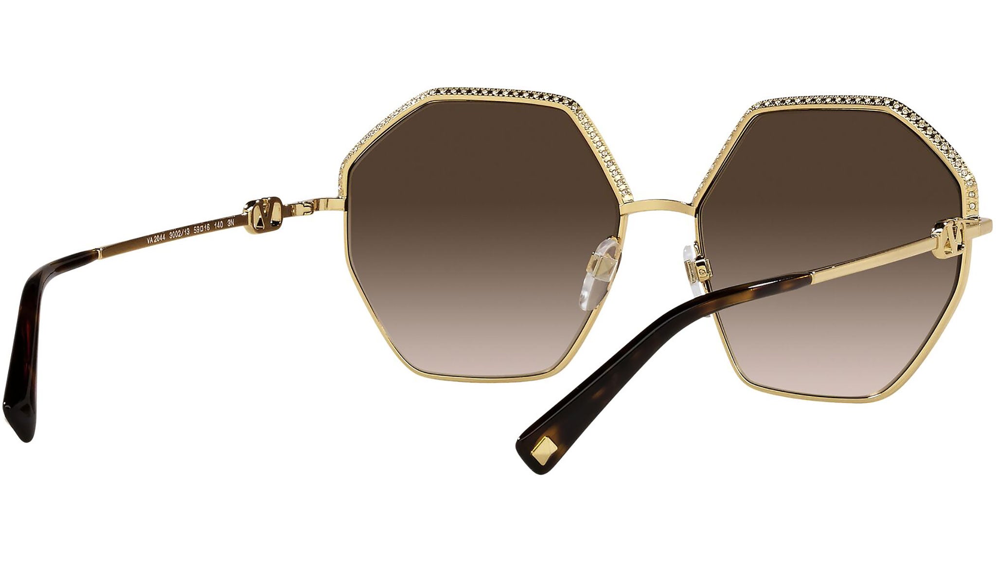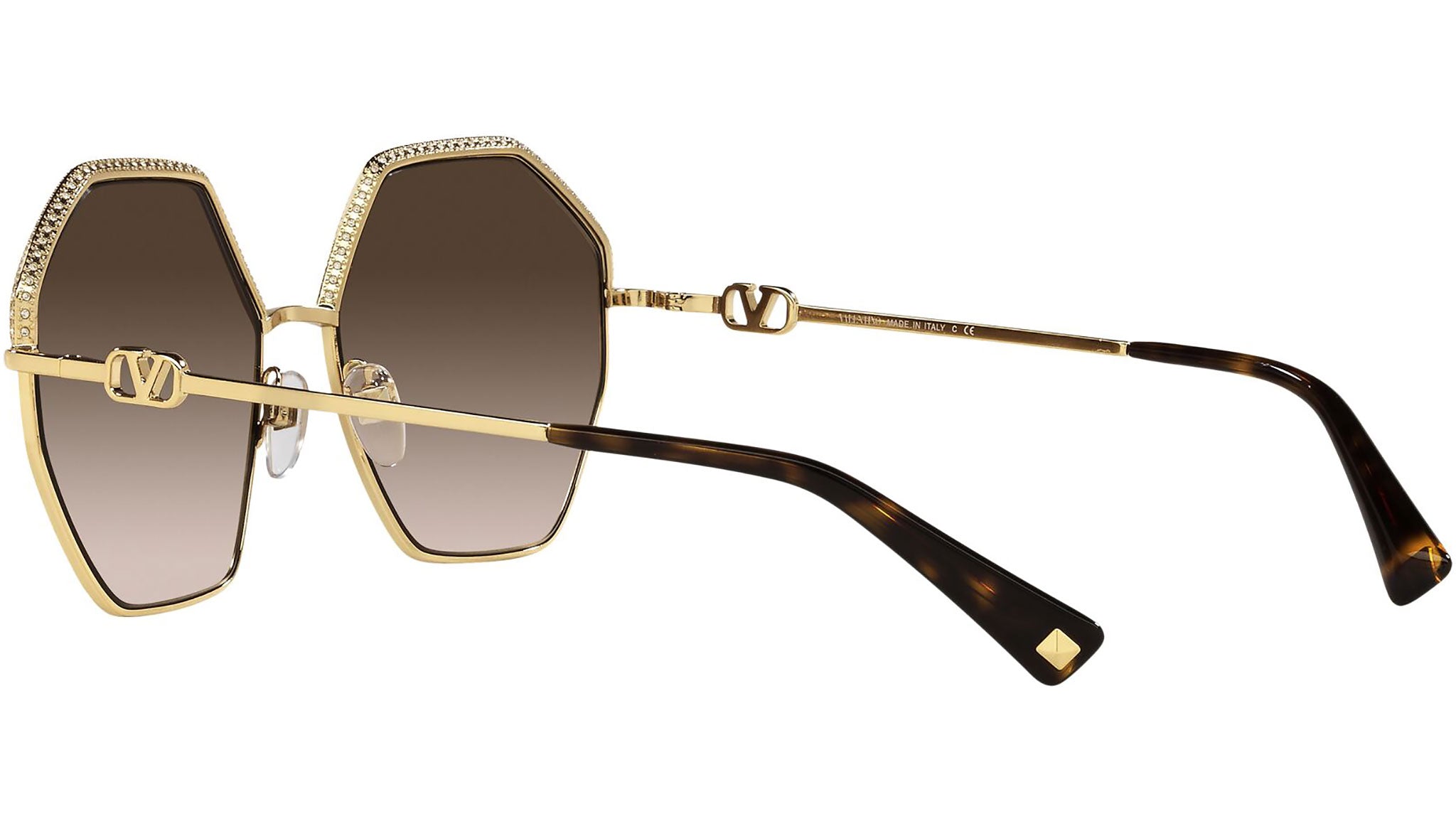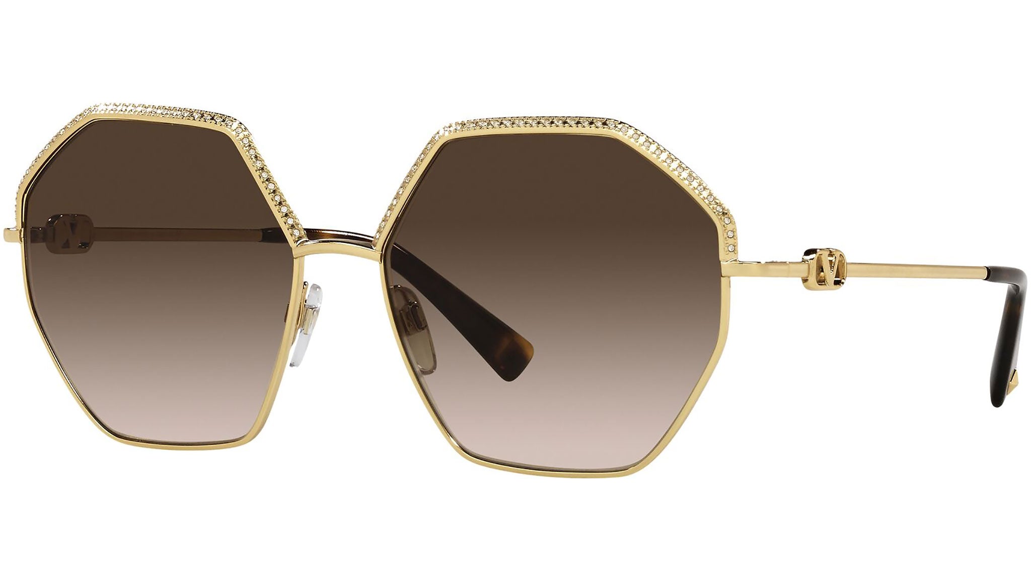 Occhiali da sole Valentino modello VA2044 variante colore 300213 oro, con lenti color marrone sfumato. Fondata a Roma nel 1960, la Maison Valentino è una delle espressioni più alte del savoir faire couture e dell’eccellenza che hanno reso il made in Italy famoso nel mondo. Le collezioni Valentino eyewear esprimono l’eleganza senza tempo della Maison in un perfetto equilibrio tra tradizione ed innovazione nel pieno rispetto degli iconici valori del brand.