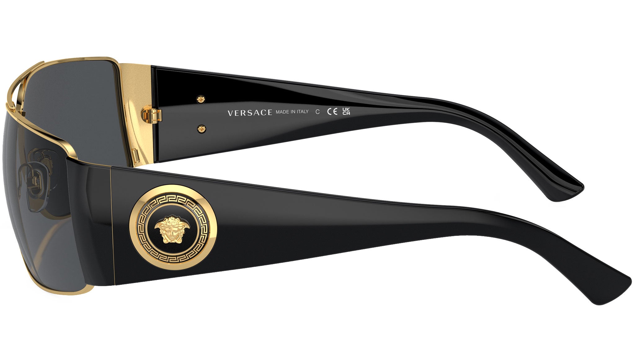 Occhiali da sole Versace modello VE2163 codice colore 100287, variante colore oro con lenti color grigio scuro. Dedicata a chi desidera uno stile contemporaneo, sexy, sofisticato e dalla forte personalità, Versace è una delle case di alta moda e lusso più iconiche e famose al mondo. La collezione da sole combina innovazione tecnica e stile essenziale del brand, ed è fortemente caratterizzata dagli elementi decorativi che da sempre contraddistinguono la Maison.