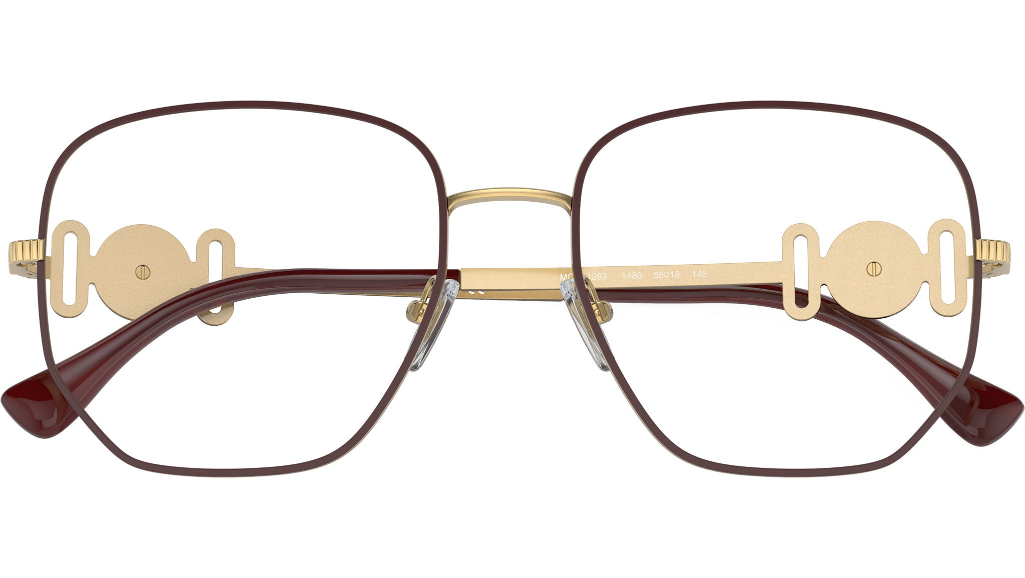 Occhiali da vista Versace modello VE1283 variante colore 1480 bordeaux / oro. Dedicata a chi desidera uno stile contemporaneo, sexy, sofisticato e dalla forte personalità, Versace è una delle case di alta moda e lusso più iconiche e famose al mondo. La collezione eyewear combina innovazione tecnica e stile essenziale del brand, ed è fortemente caratterizzata dagli elementi decorativi che da sempre contraddistinguono la Maison.