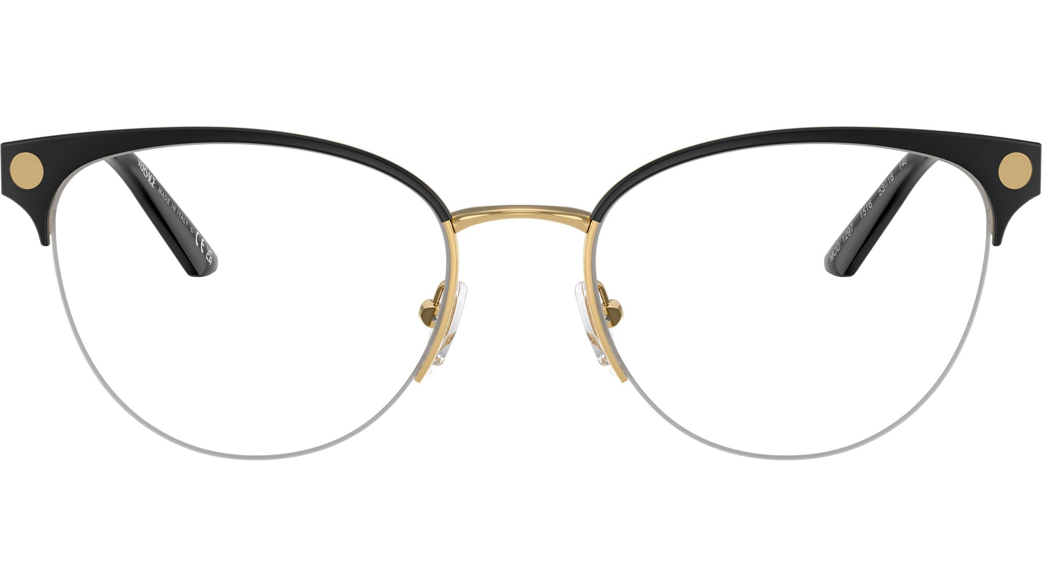 Occhiali da vista Versace donna modello 1297 semi rim in metallo oro / nero opaco con lenti demo base 4. Naselli regolabili. Linea: Daily Heritage. Codice brand: 0VE1297. Codice colore: 1516. Rivenditore autorizzato online Versace Eyewear. Ogni prodotto Versace viene consegnato con astuccio originale e accessori ed è coperto da garanzia del produttore di 12 mesi.