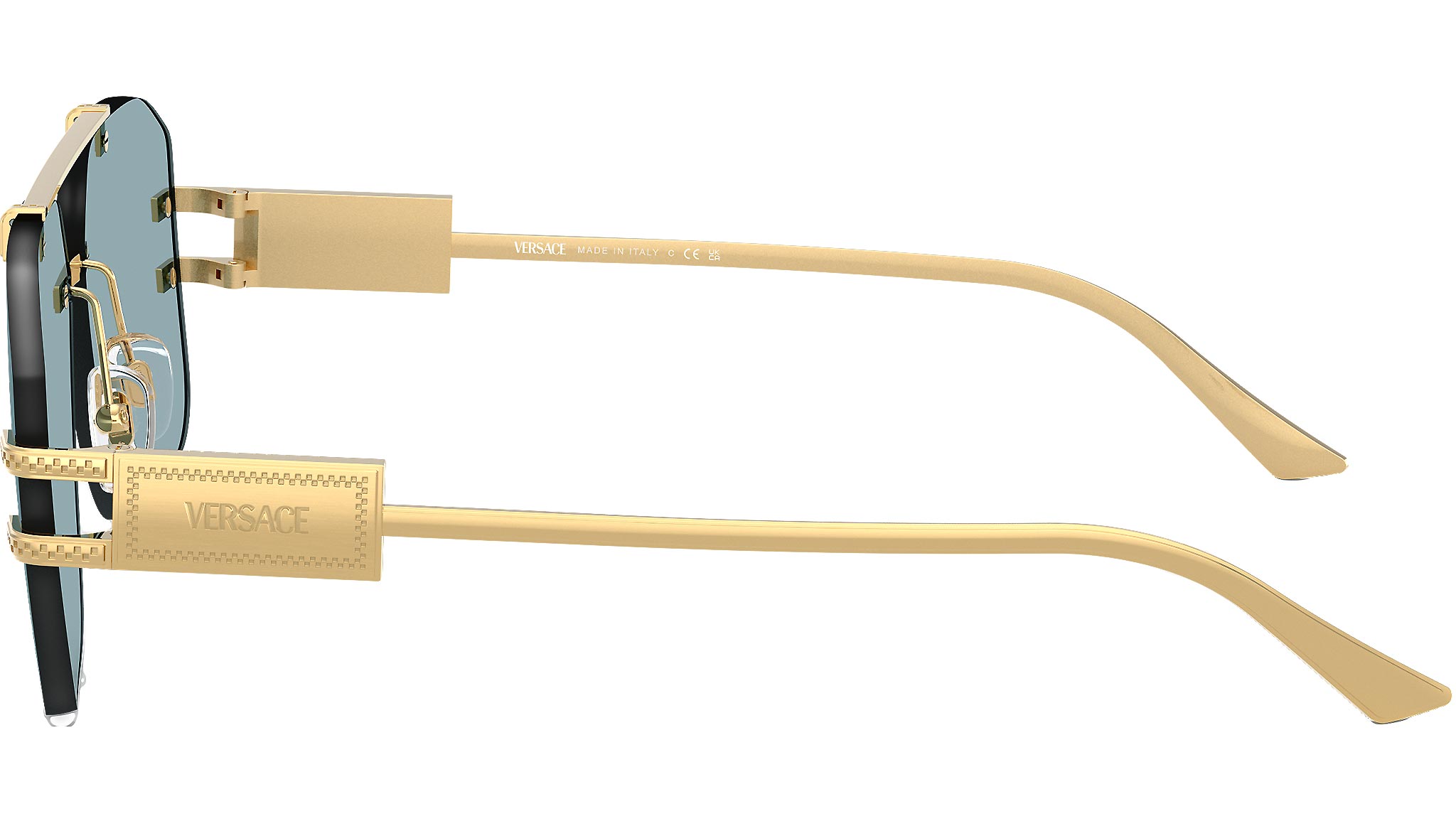 Occhiali da sole Versace uomo modello 2275 rimless in metallo color oro con lenti blu base 2. Naselli regolabili. Linea: Fashion Id. Codice brand: 0VE2275. Codice colore: 100280. Rivenditore autorizzato online Versace Eyewear. Ogni prodotto Versace viene consegnato con astuccio originale e accessori ed è coperto da garanzia del produttore di 12 mesi.